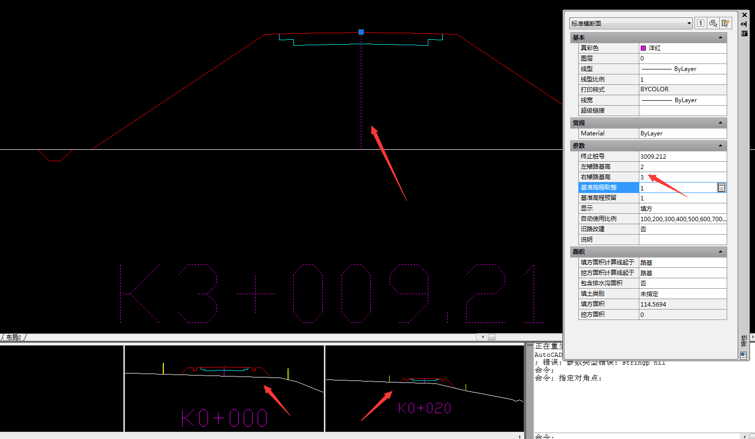 1、生成坡面防护图只是“横断面设计”模块的一个很小的功能,使用“横断面设计”模块是可以实现“横断面设计绘图”模块所有功能的,你可在使用“横断面设计”模块的“标准横断面”窗口或“逐桩横断面”窗口中,选择横断面的中线,即可在cad特性窗口中设置断面的左右侧“矮路基临界高度”,如下图所示: